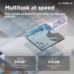 - Blazing-fast performance. Power your day with a Snapdragon 7s Gen 2 processor, up to 24GB of memory with RAM Boost and up to 512GB storage